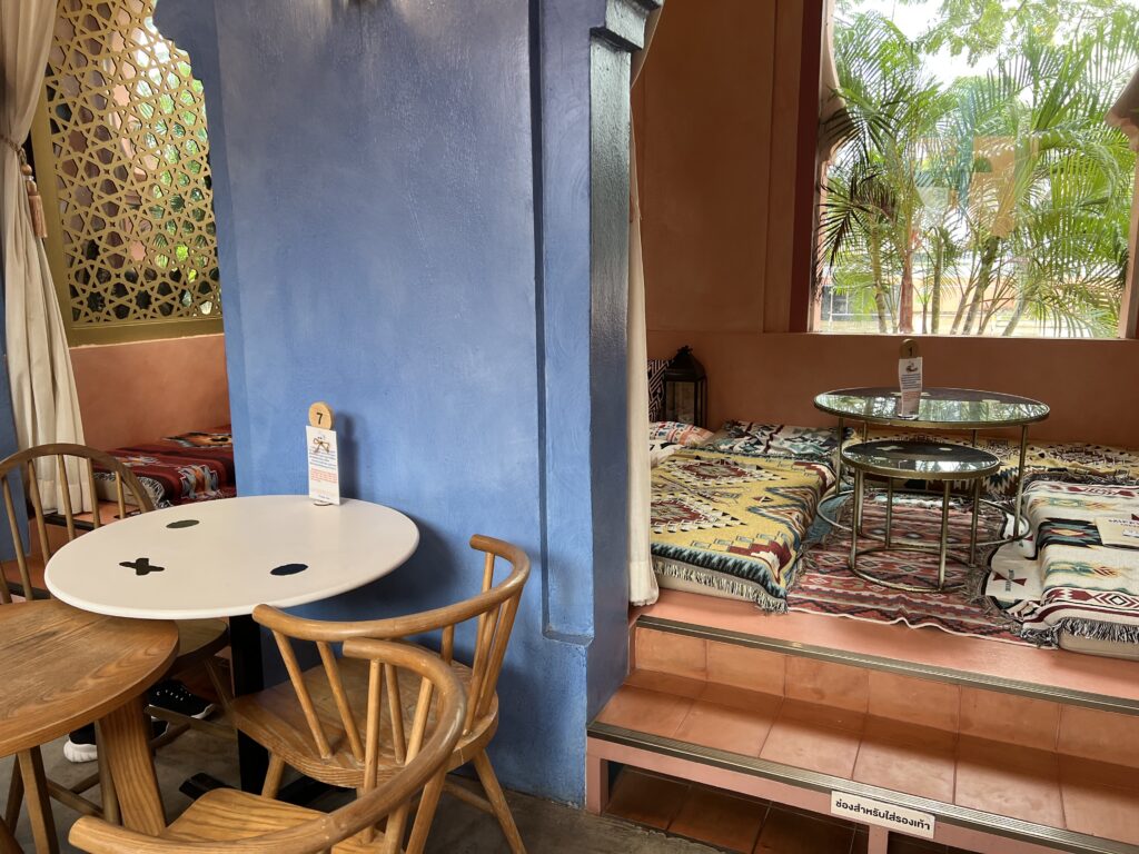 ホアヒンのミッフィーカフェは、ミッフィーが可愛いだけでなく、バンコクから向かってホアヒンの入り口にあるため休憩にちょうど良く、店内の雰囲気は中東・アラビアンスタイルで外国っぽさあり、そして席は座敷席もあるのでねんね期の赤ちゃんをゴロンさせられる大きなポイントがあります!
