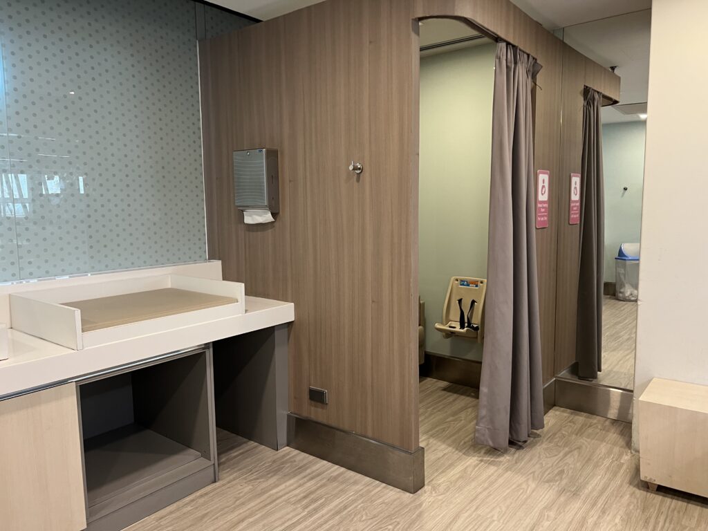 ラウンジを後にして、搭乗前のおむつ替えと授乳。