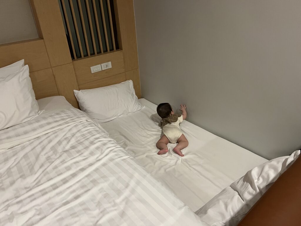 お部屋も広くて清潔感もあってよかった!と思いきや、予約時にリクエストした息子用のベビーベッドの用意がない・・・。