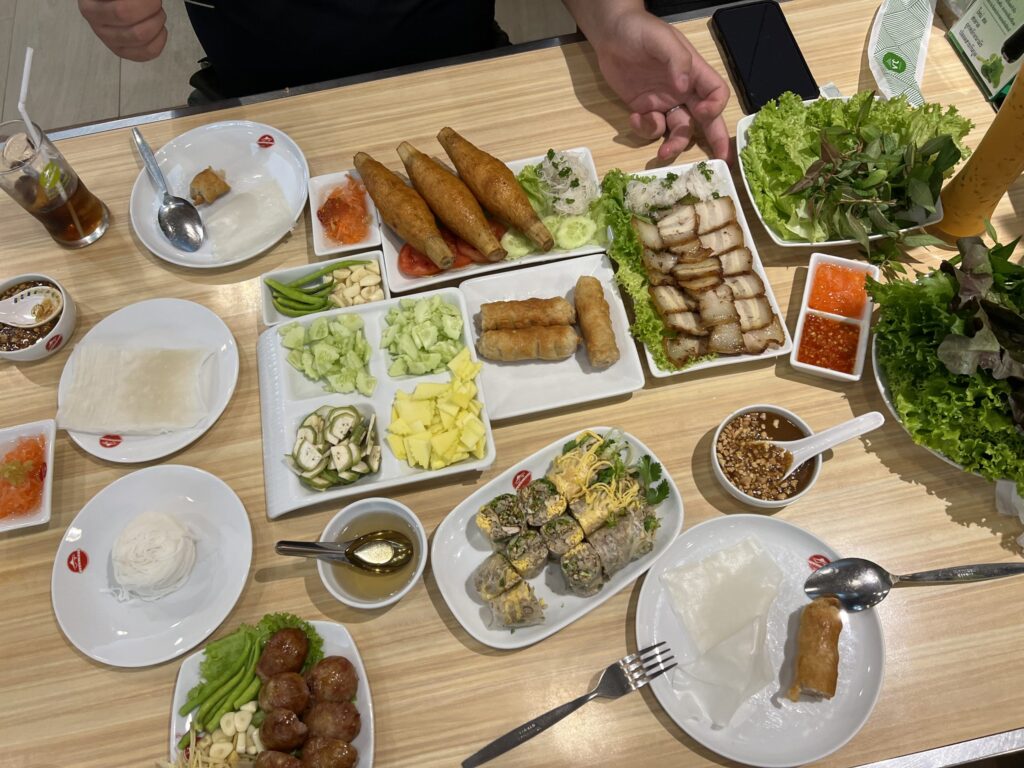 Grabで移動して、お友達にお勧めしてもらったベトナム料理店(VTネームヌアン)で夕食です。