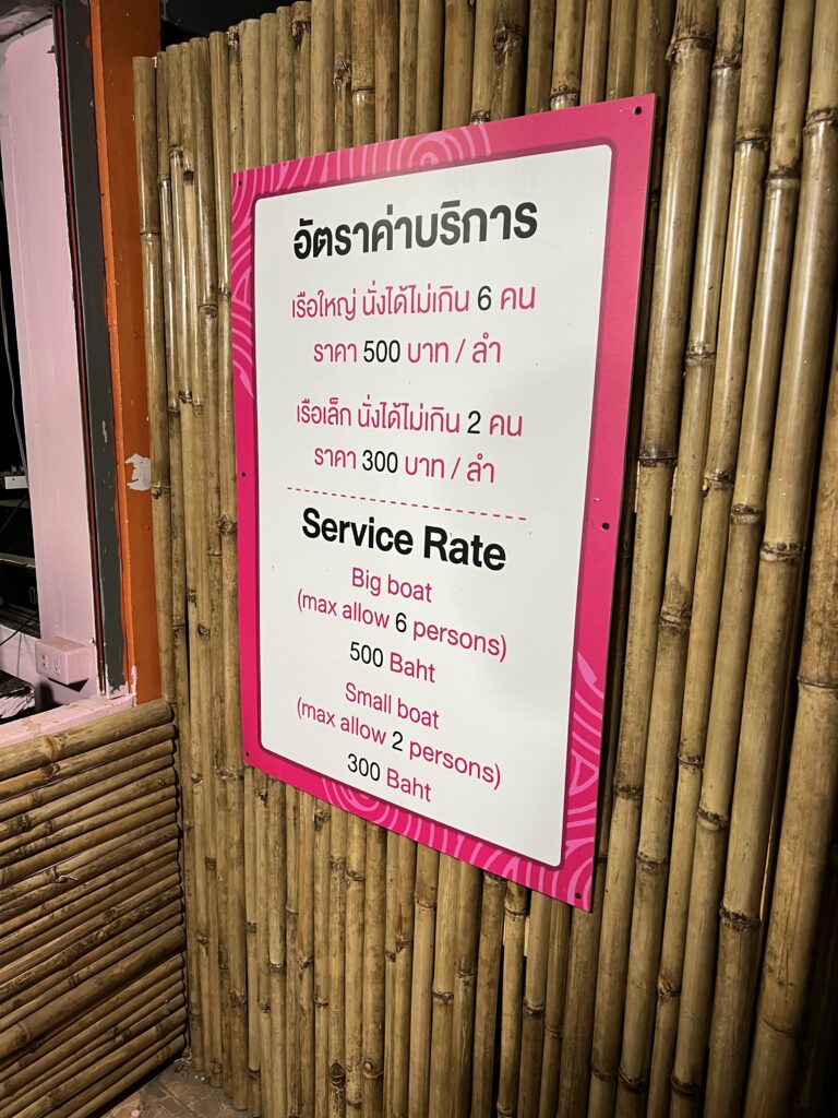 大きいボートは乗船人数最大6名で500バーツ。