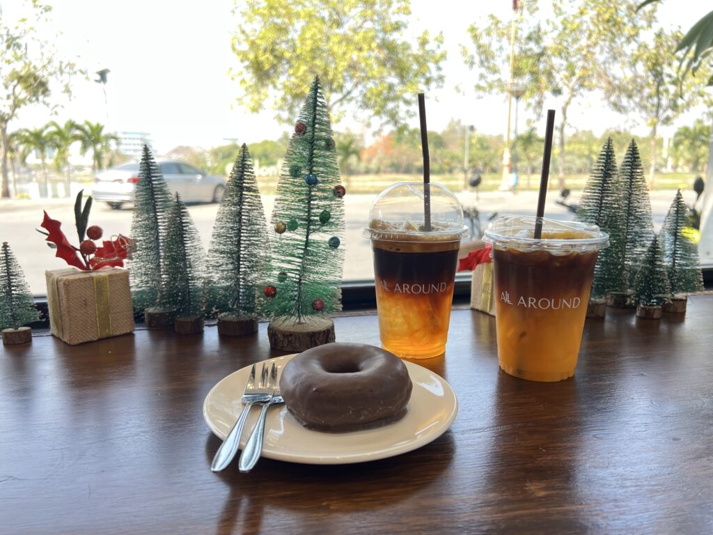 そのまま空港に行くのも惜しいので、ノーンプラジャック公園が見えるカフェ(ALL Around Cafe Udon)で休憩しました。